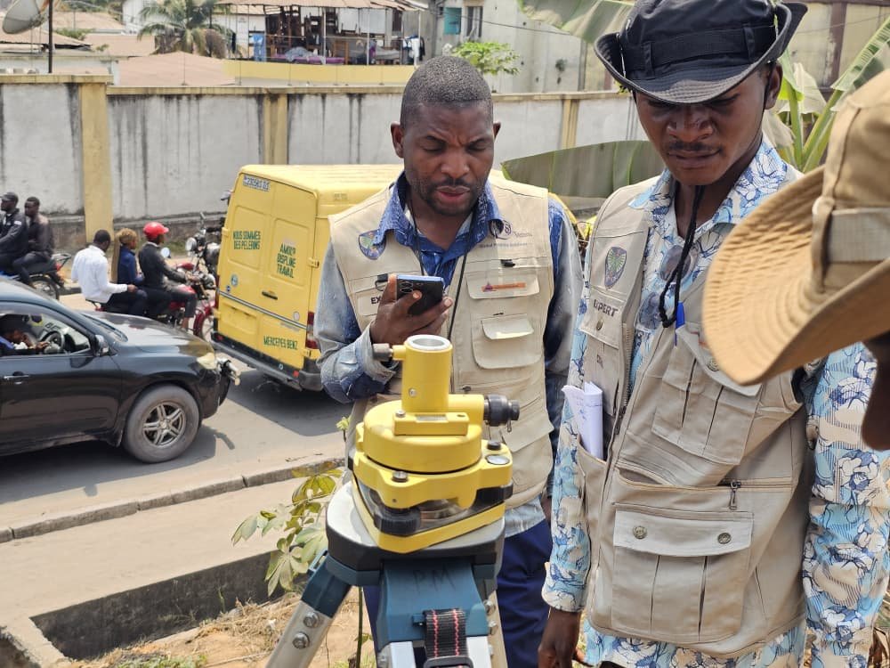 L’équipe topographique de CEGEAU SARL s’est officiellement déployée sur le terrain ce 19 août 2025 pour lancer les études topographiques liées à la polygonale dans la commune de Kintambo.